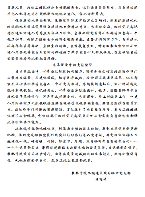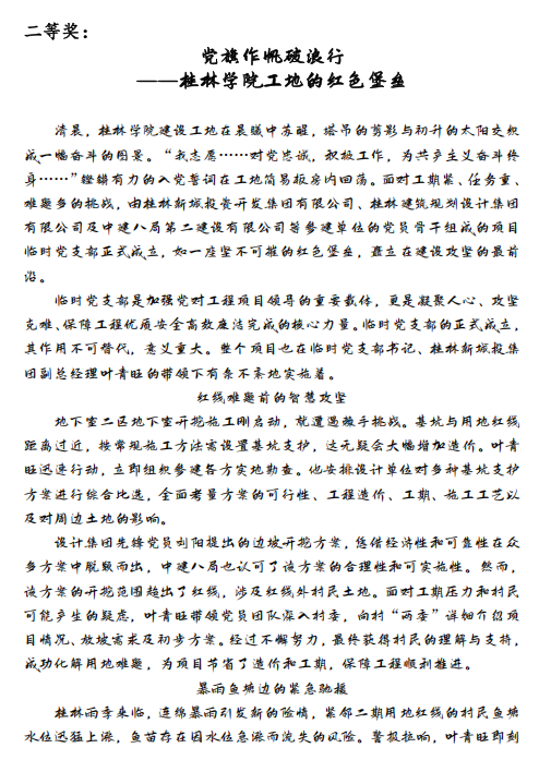 二等獎:唐際晴《黨旗作帆破浪行——桂林學(xué)院工地的紅色堡壘》