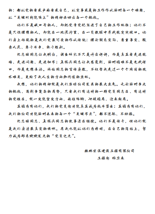 本次征文比賽不僅挖掘了一批真實(shí)動人的黨員故事,更成為支部黨員學(xué)習(xí)先進(jìn)、對標(biāo)榜樣、凝聚共識的重要載體。通過“講身邊事、學(xué)身邊人”,黨員們進(jìn)一步深化了對黨的二十大精神的理解,激發(fā)了立足崗位、爭先創(chuàng)優(yōu)的熱情。獲獎作品《黨旗映勝地,奉獻(xiàn)筑華章》《清風(fēng)拂過案頭》《黨旗作帆破浪行——桂林學(xué)院工地的紅色堡壘》等,以細(xì)膩筆觸描繪了黨員在不同領(lǐng)域的堅(jiān)守與奉獻(xiàn),成為支部內(nèi)互學(xué)互鑒的鮮活教材。