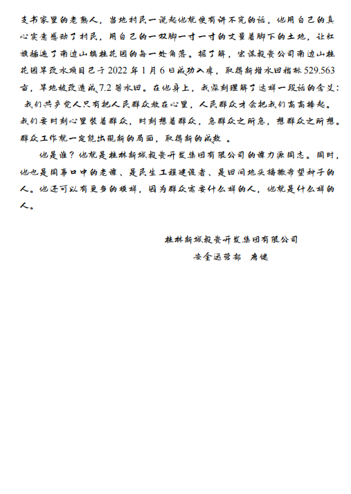 新城投集團(tuán)第三黨支部近日成功舉辦了“講好我身邊的黨員故事”主題征文比賽,活動以弘揚(yáng)黨員先鋒模范作用、展現(xiàn)基層黨員奉獻(xiàn)精神為宗旨,通過講述身邊黨員的感人事跡,進(jìn)一步凝聚支部向心力,推動黨的二十大精神落地生根。本次活動取得了顯著成效,為集團(tuán)黨建工作注入新活力。